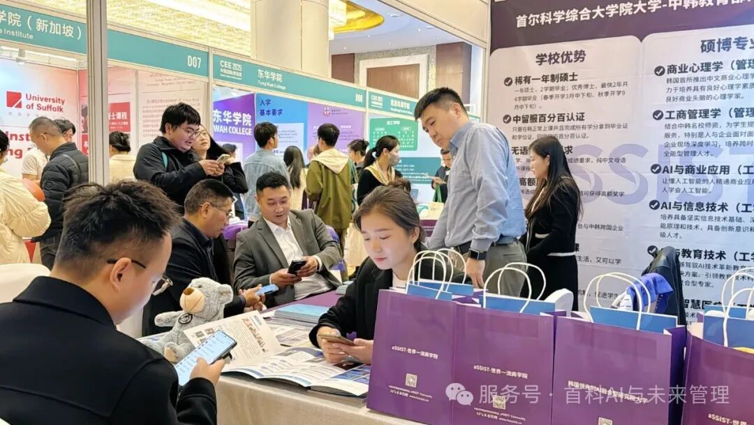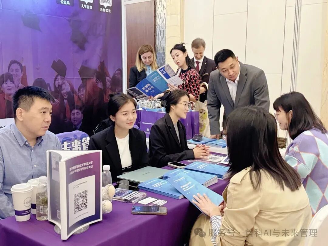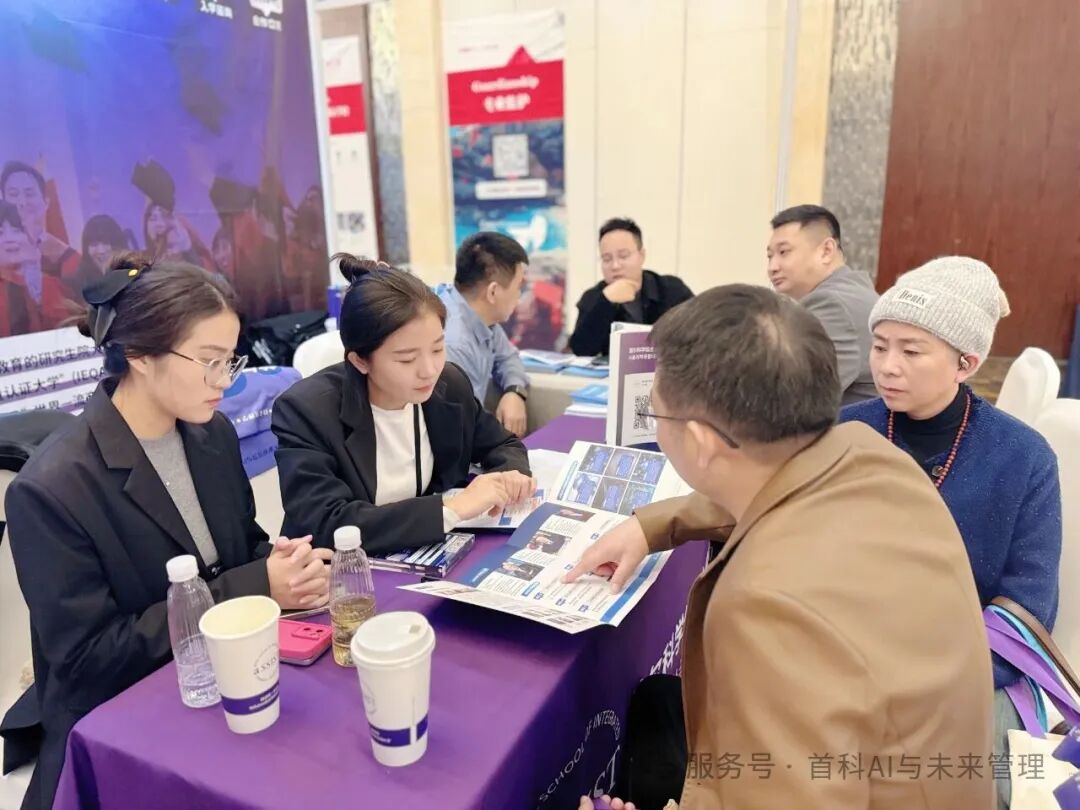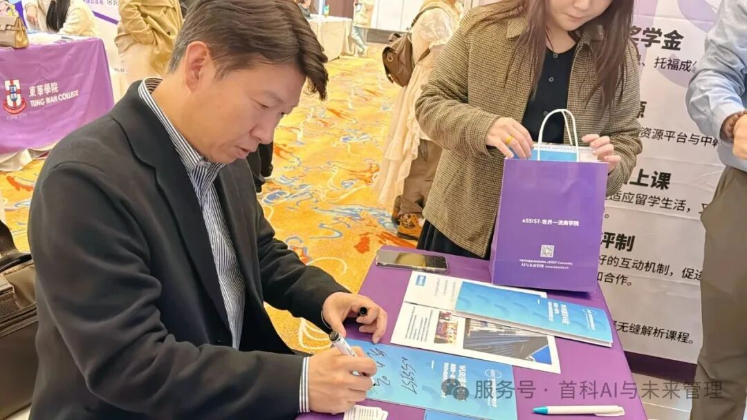 展会现场,aSSIST 展位前人流涌动、咨询不断。首科大中国合作处团队围绕学校核心优势展开深度解读:针对一年制硕士、两年制博士的灵活学制,详细说明其适配不同学子的深造规划;聚焦 AI 与商业应用、AI 与智慧医疗管理等热门交叉学科,结合当下产业发展趋势做针对性分析,让咨询者清晰感知学科设置与个人职业规划的高度契合。